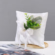 Elegante Cuscino Portafedi per Matrimonio, Bianco con Rose e Foglie Verdi, Decorato con Fiocco in Raso e Perle, 18x18 cm