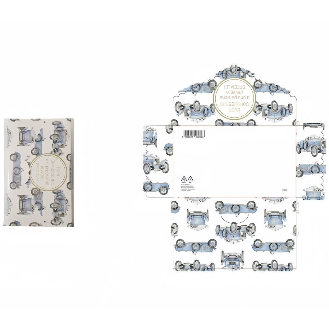 • Design raffinato con motivo di auto d’epoca blu e dettagli dorati