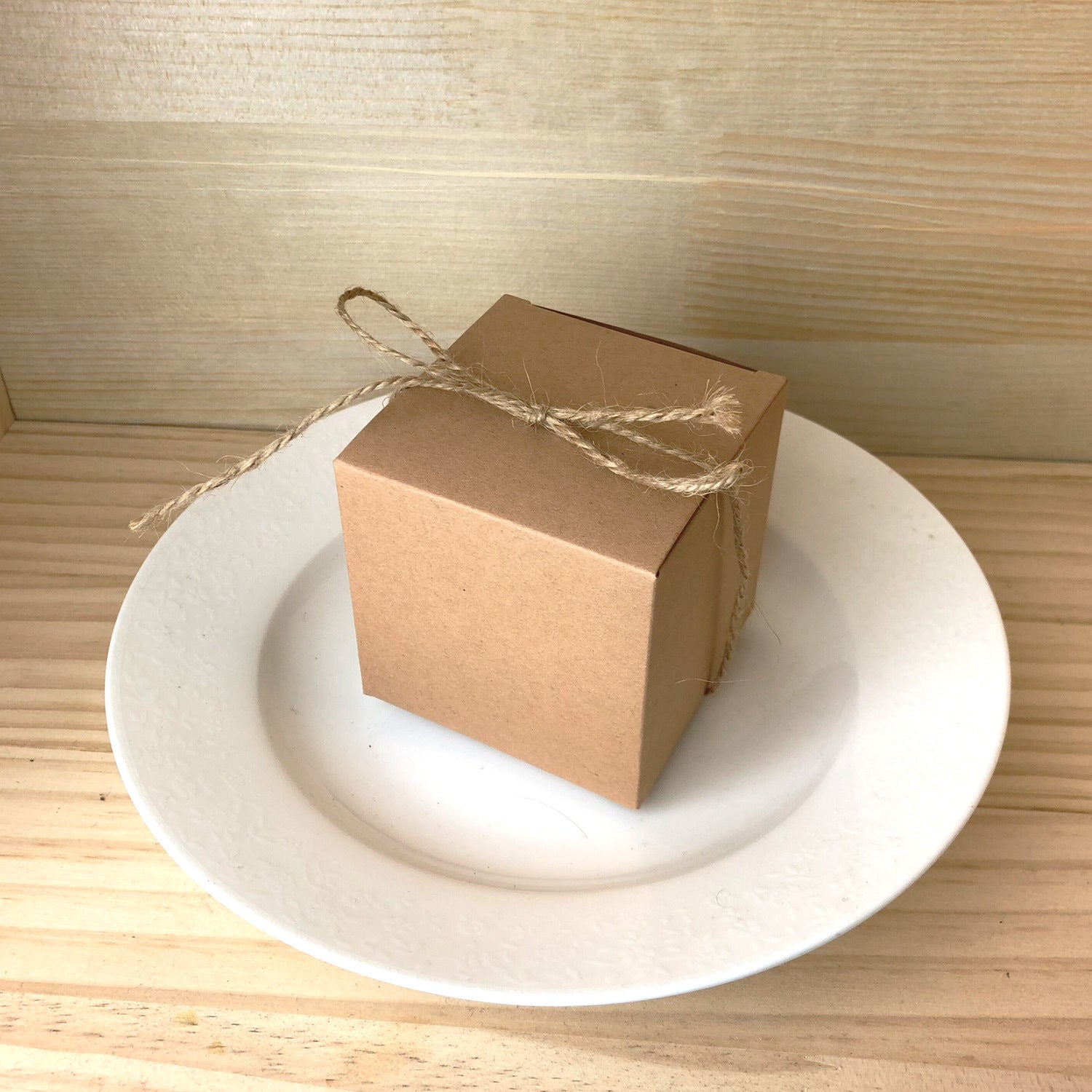 50pz Cubo Scatola Portaconfetti In carta Kraft con Corda in canapa Tema naturale