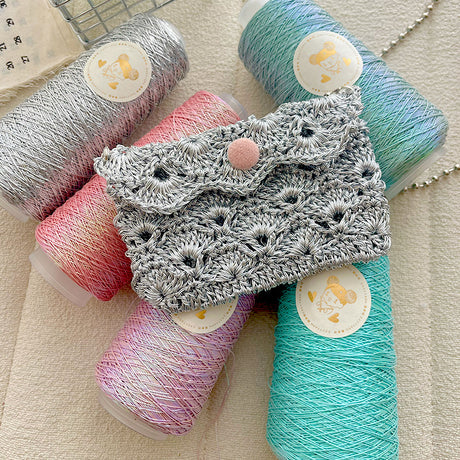 Gomitolo Filo Cordino da Uncinetto glitterato 1mm effetto mettalico metallico per maglieria e uncinetto 200g 475 metri Vari colori