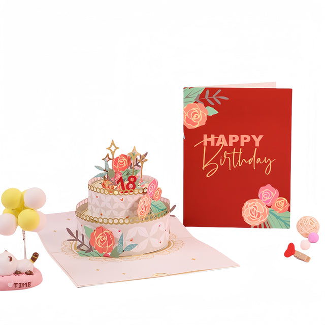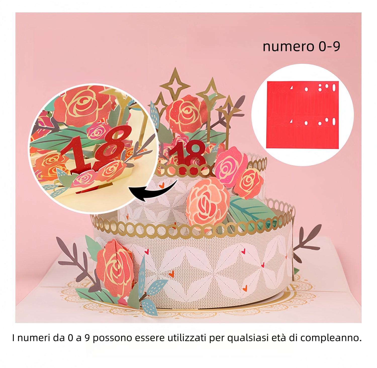 Biglietto di auguri di compleanno pop-up 3D con numeri fai da te, Torta decorata con rose